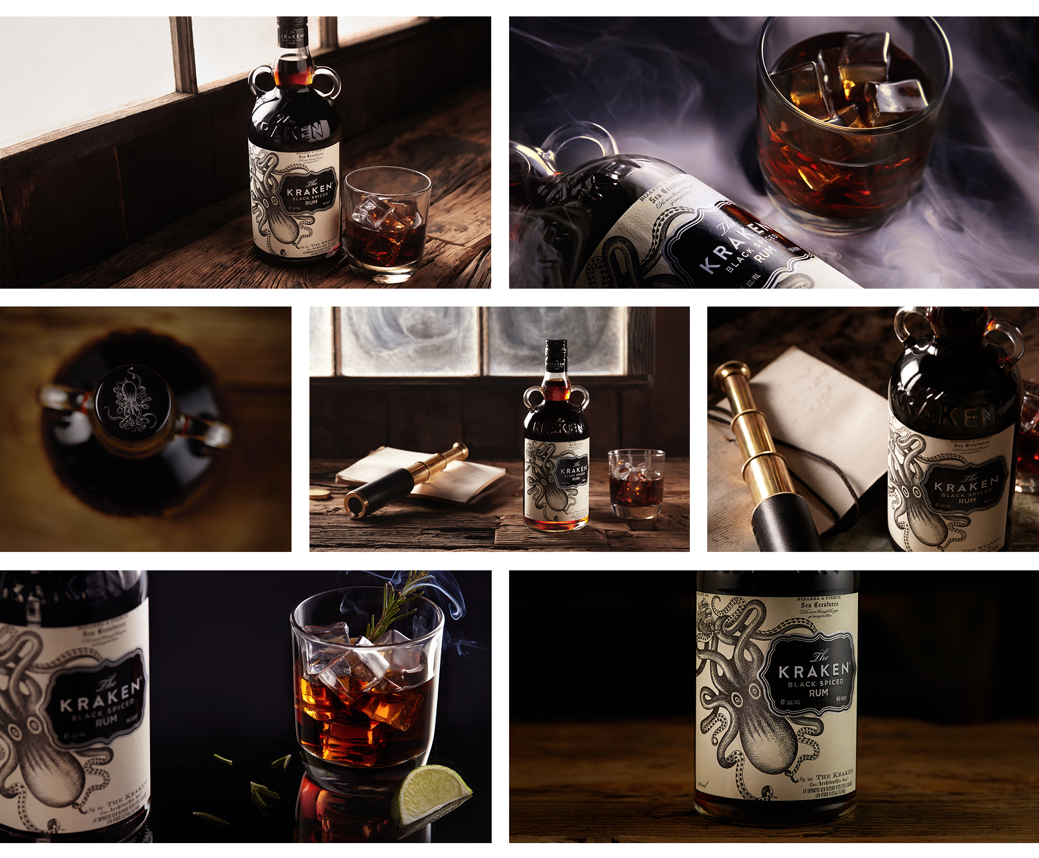 Kraken provided a nice brand precense, which inspired a lot of the shots. It was key to maintain this presence and focus on introducing elements that would stay true to the brand. We were after that mysterious out-on-sea kind of vibe.